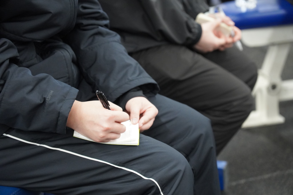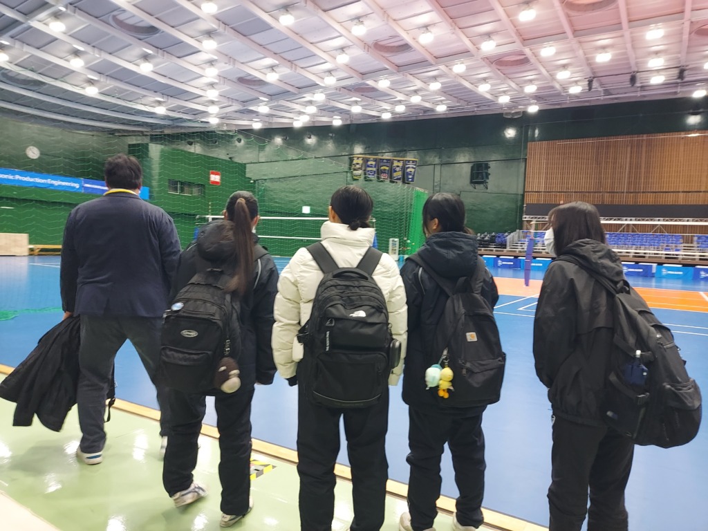 憧れのプロチームで、同じく憧れの仕事であるトレーナー業務につく大先輩の話が聞けるとあり、ワクワクと緊張が入り混じった表情で、学生はいざ、アリーナへ!