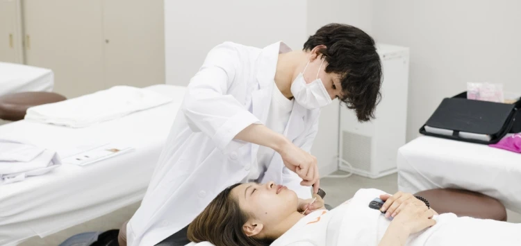 鍼灸学科には美容に特化した選択授業があり、男子学生にも大人気。
