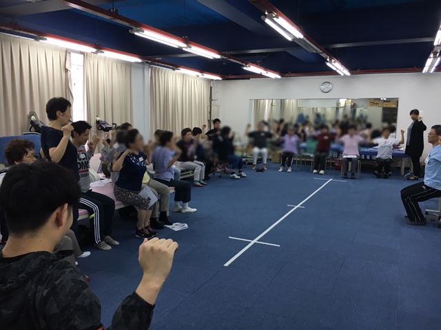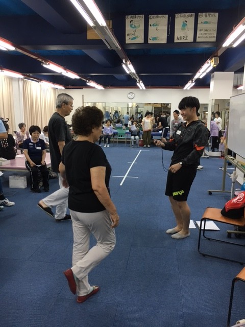 今日は、初回ということで、体力測定でした。握力、柔軟性、筋力などなど。その測定の予習の様子です。