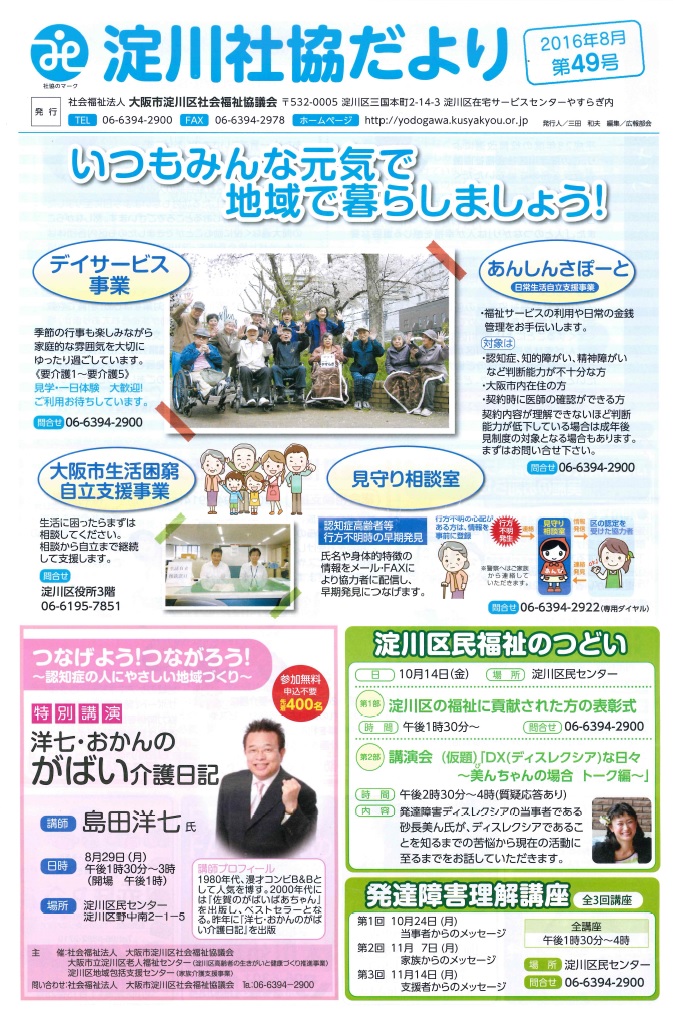 2016.08.29 介護予防運動鍼灸ケア教室、頑張ってます! 淀川区社会福祉協議会・淀川区老人福祉センターと一緒に進めている「介護予防運動鍼灸ケア教室」、先週で6回目が終わりました。みなさん、暑い中を本校まで来ていただいてます。 その記事が淀川区全域に配布される協議会の広報誌に載りました。 毎回、工夫しながら進め、工夫することで色々勉強させていただいてます。 今後も色々な知恵を出し合い、有意義な時間としたいと思います。 最後まで、みんなで頑張りましょう! 前の記事 記事一覧 次の記事