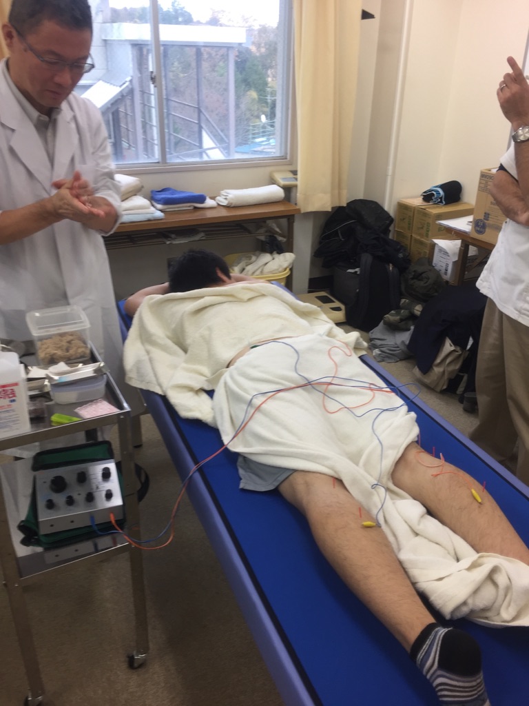 ちなみに、上の写真は足に鍼をしながら電気を流しているところです。