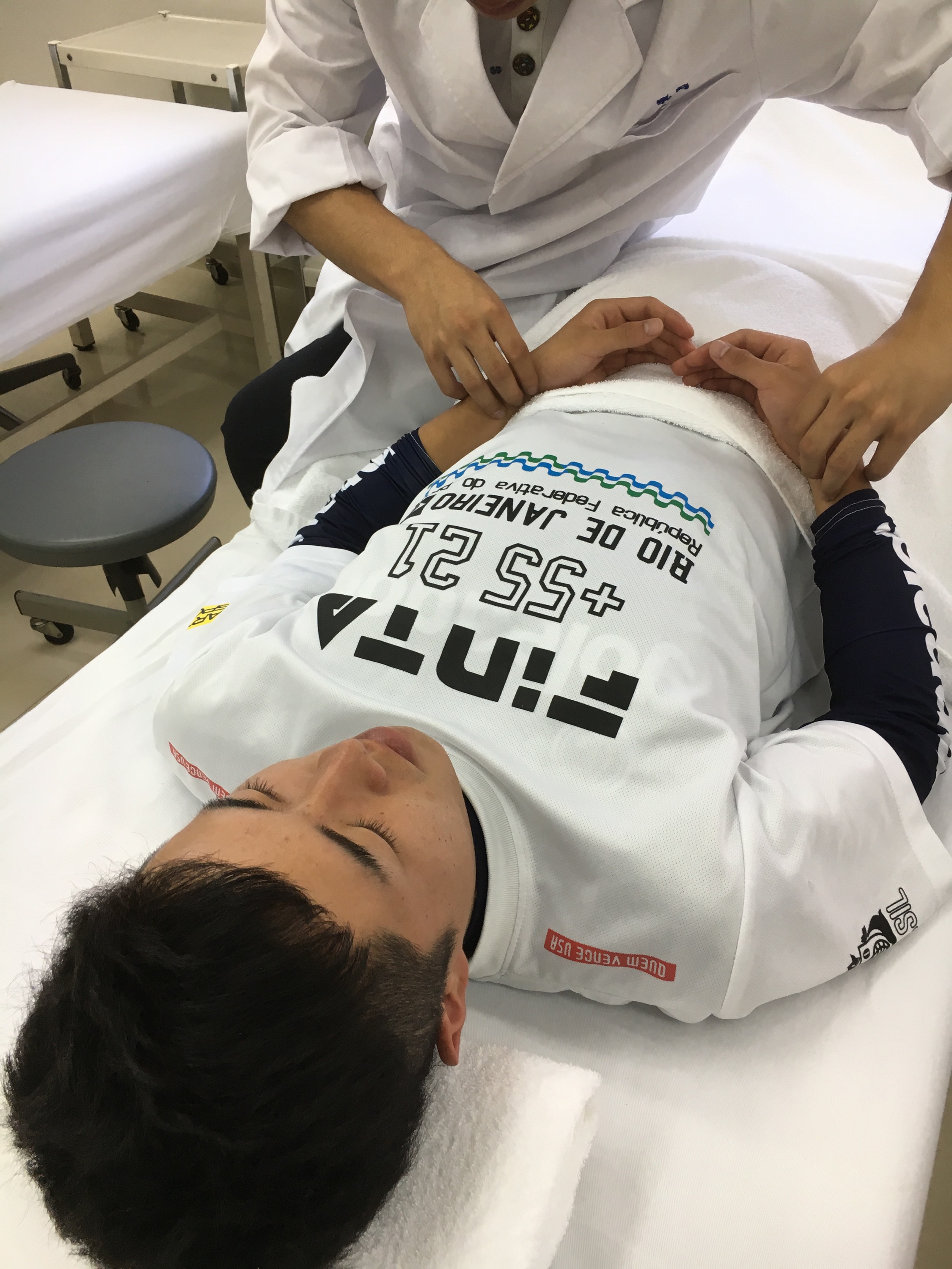 体調が悪いときには、下級生が上級生に治療をお願いしています。
