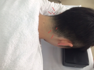 「天柱(てんちゅう)」、「風池(ふうち)」、「完骨(かんこつ)」というツボに刺しました。