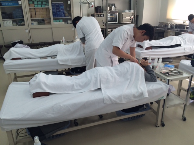 本日は1年生「はり基礎実技」の授業風景をお届けします。