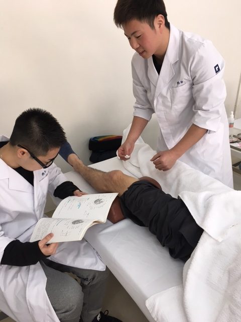 2018.01.16 2018 はり初め あけましておめでとうございます。 教員の桝谷です。 昨年12月の中旬から冬休みがあり、 昨日久しぶりに1年生の「はり基礎実習」の授業がありました。 2018年 初はりです。 「冬休み中、はりを触っていましたか?」との問いかけに手を挙げたのは 2、3名でした・・・ というわけで、 まずはしっかり教科書で復習です。 冬休み前より時間はかかっていましたが、しっかり刺入できていました。 前の記事 記事一覧 次の記事