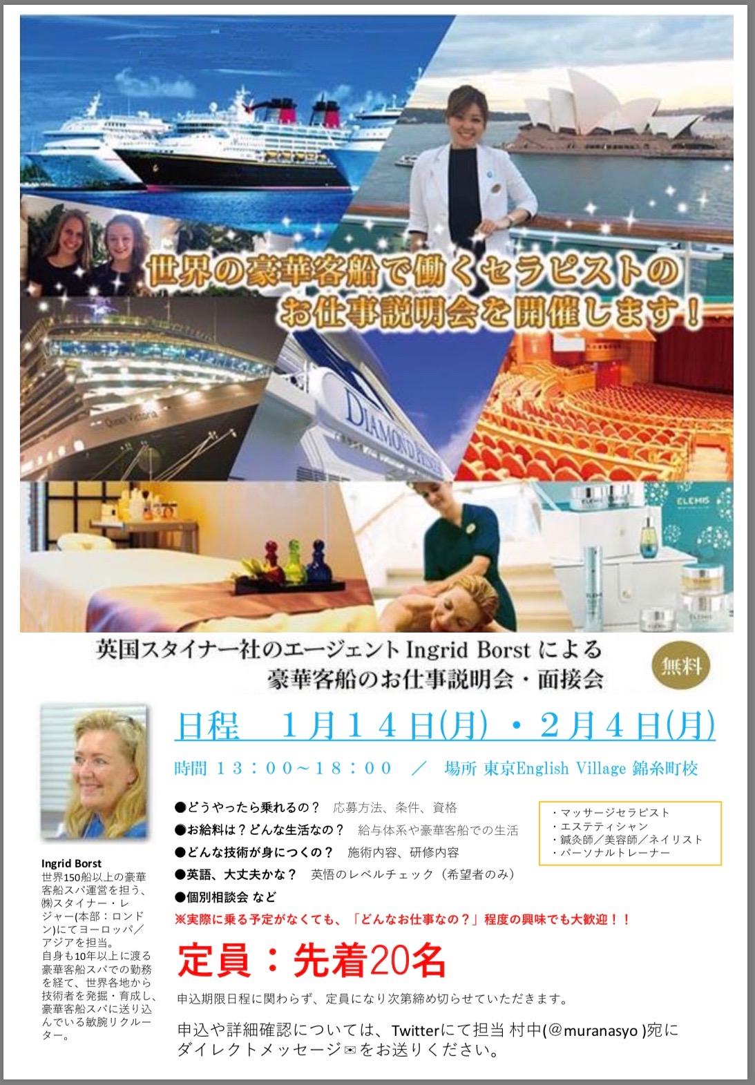 そんな船上鍼灸師(セラピスト)に関して、説明会があるとのことです。