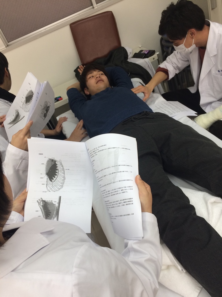 2019.02.18 筋肉触れるかな? こんにちは、教員の桝谷です。 現在、1・2年生は通常授業が終わり集中授業を行っています。 その中の1つが、1年生の「冬季形態学実習」です。 簡単に言えば筋肉の触察です。 (前鋸筋を触っているのかな?) その筋肉がはりを刺す、お灸をすえるポイントとなります。 また目には見えませんが経穴(ツボ)もあります。 経穴を取る目印となるのが筋肉や骨です。 前の記事 記事一覧 次の記事