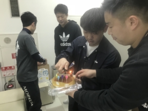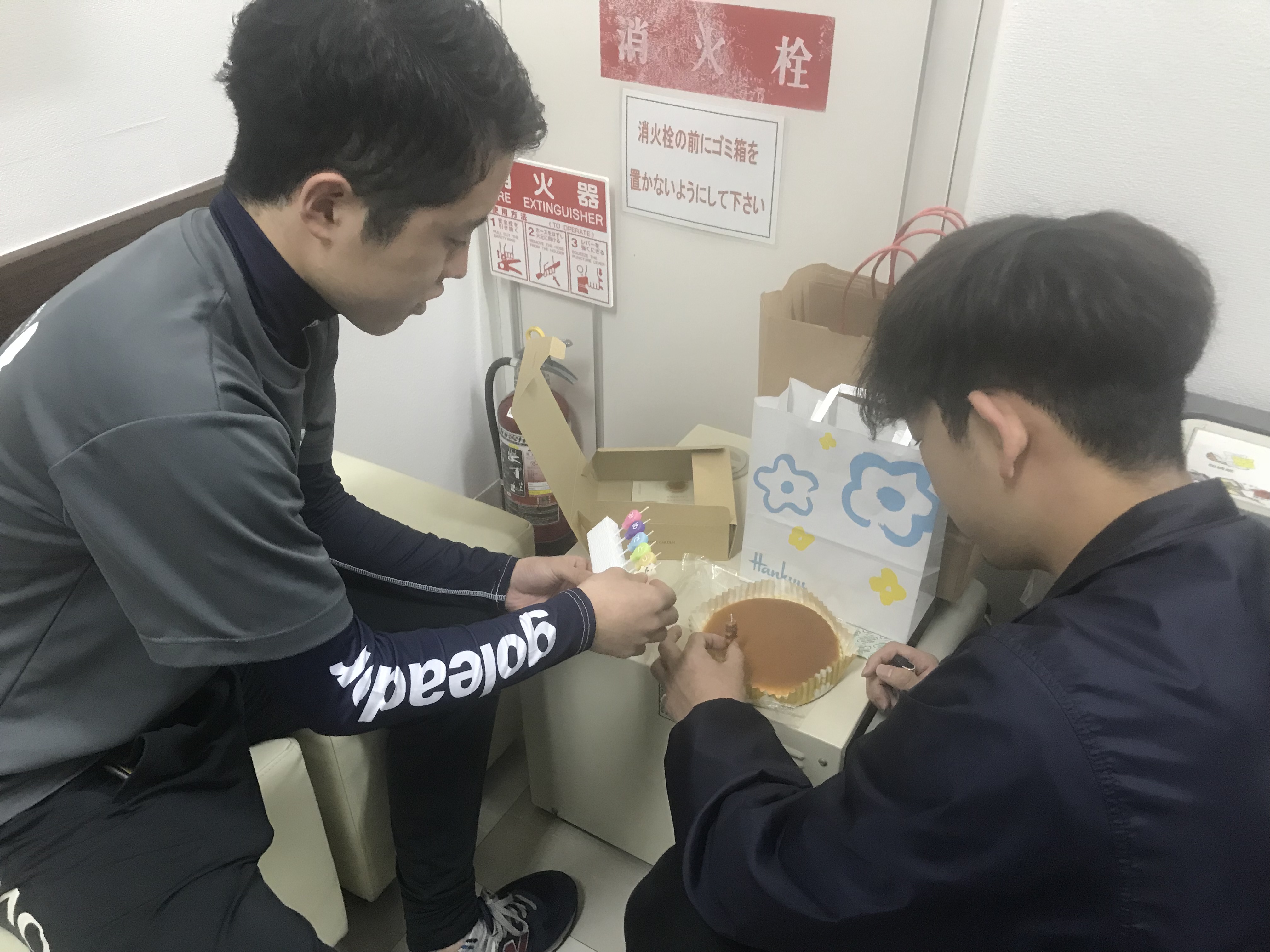 2019.04.17 サプライズ! 休み時間に、なにやら3年生がゴソゴソやってました。 今日は先日お誕生日を迎えた3年生午前部担任の 深尾先生が3年生の授業を担当する曜日だったので、 クラスの学生がサプライズでお祝いを用意して いたみたいです。 先生から死角になる位置でろうそくに火が つけられていきます。 準備万端、教室へと向かう学生たち。 サプライズは成功したのでしょうか。 なんだかワクワク心が温まる場面に出会えました。 前の記事 記事一覧 次の記事