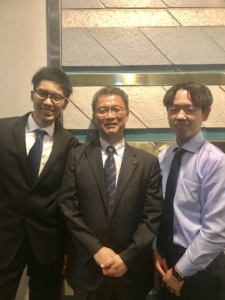 賞状は後日いただけるそうなので、賞状はありませんが、受賞直後の石川君と岩見君、そして指導教員の古田先生です。