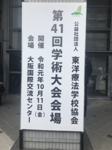 本日、大阪国際交流センターにて開催されている第41回東洋療法学校協会学術大会に参加しております。