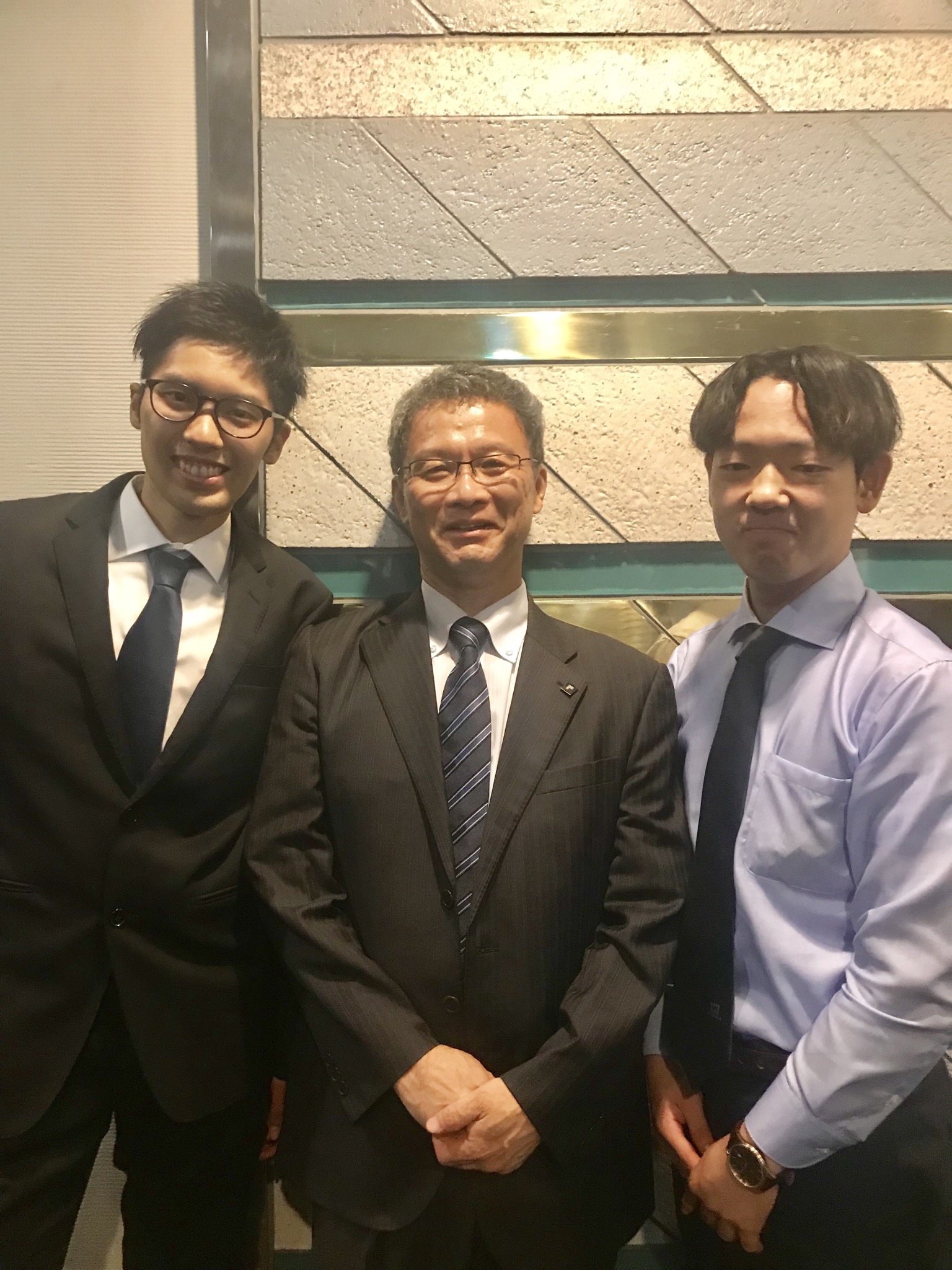 賞状は後日いただけるそうなので、賞状はありませんが、受賞直後の石川君と岩見君、そして指導教員の古田先生です。