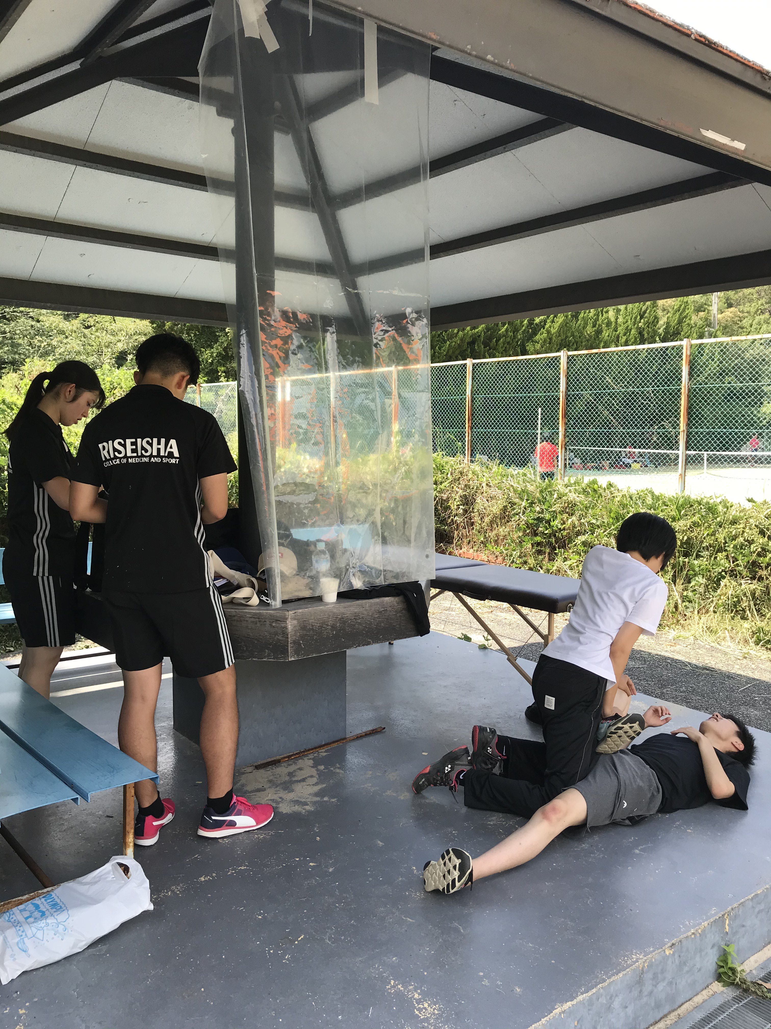この合宿帯同は、アスレティックトレーナー(AT)を目指す本校学生の実習でもあります。