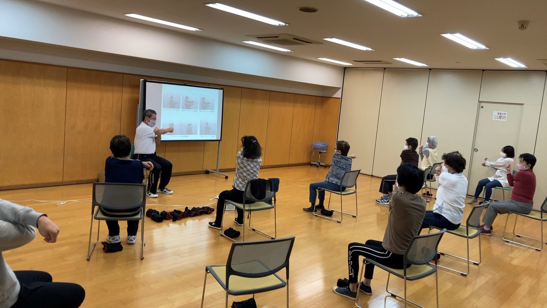 ☝こちらは参加者の方々に健康を維持するための運動指導を行っています。