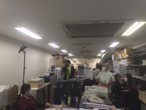 昨日広報部の方が教員室に来られてパンフレット用の写真を撮影して行かれました。
