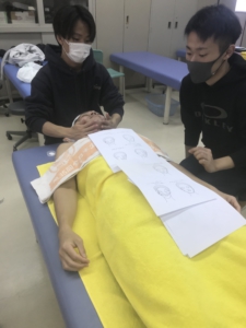 そのあとはペアに分かれてお互いに施術をしあいました。