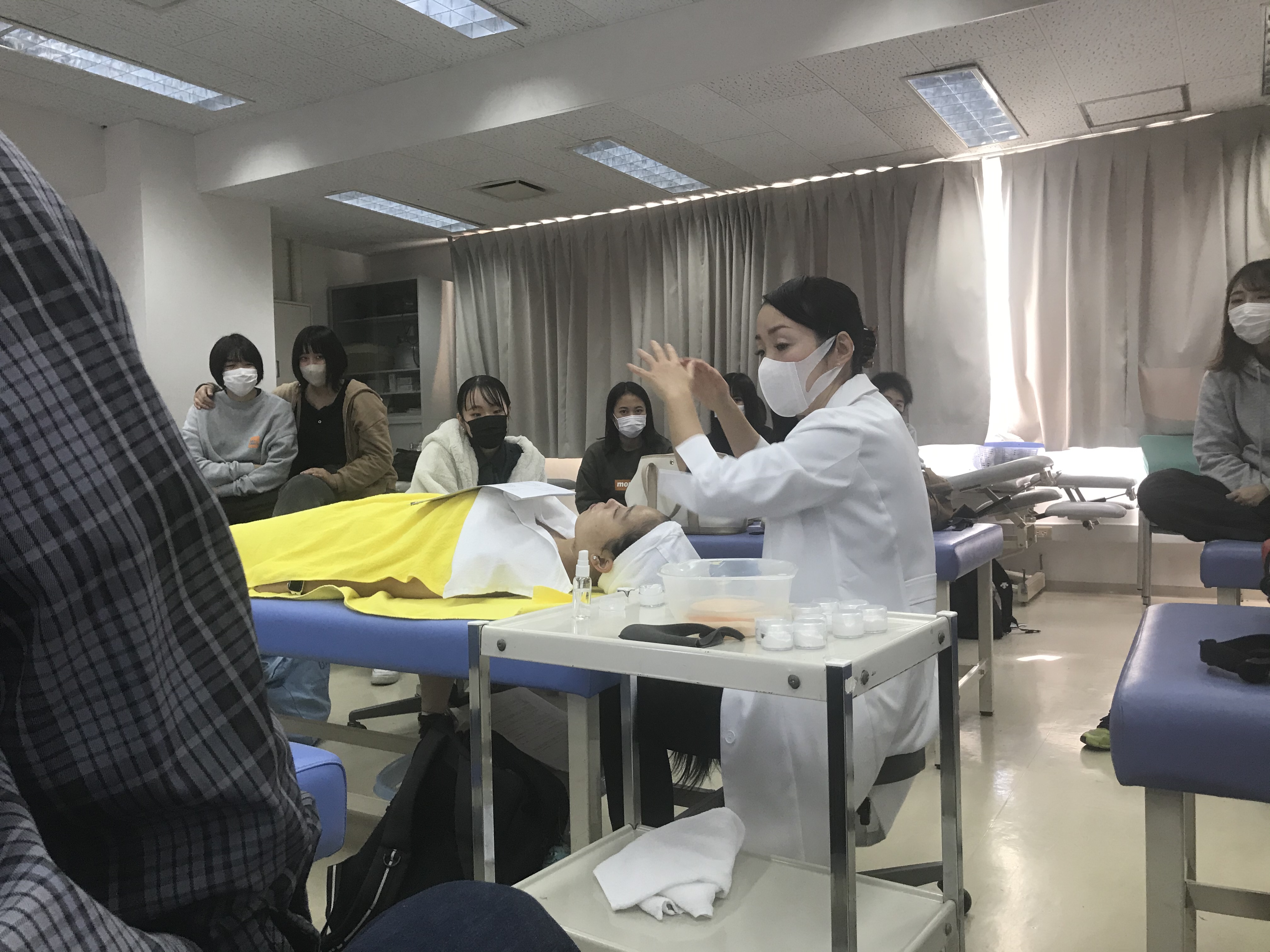 学生たちも真剣な眼差しで先生の施術を見ています。