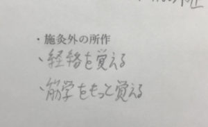 2年生からなのですが、きゅう基礎実技最後の授業では
