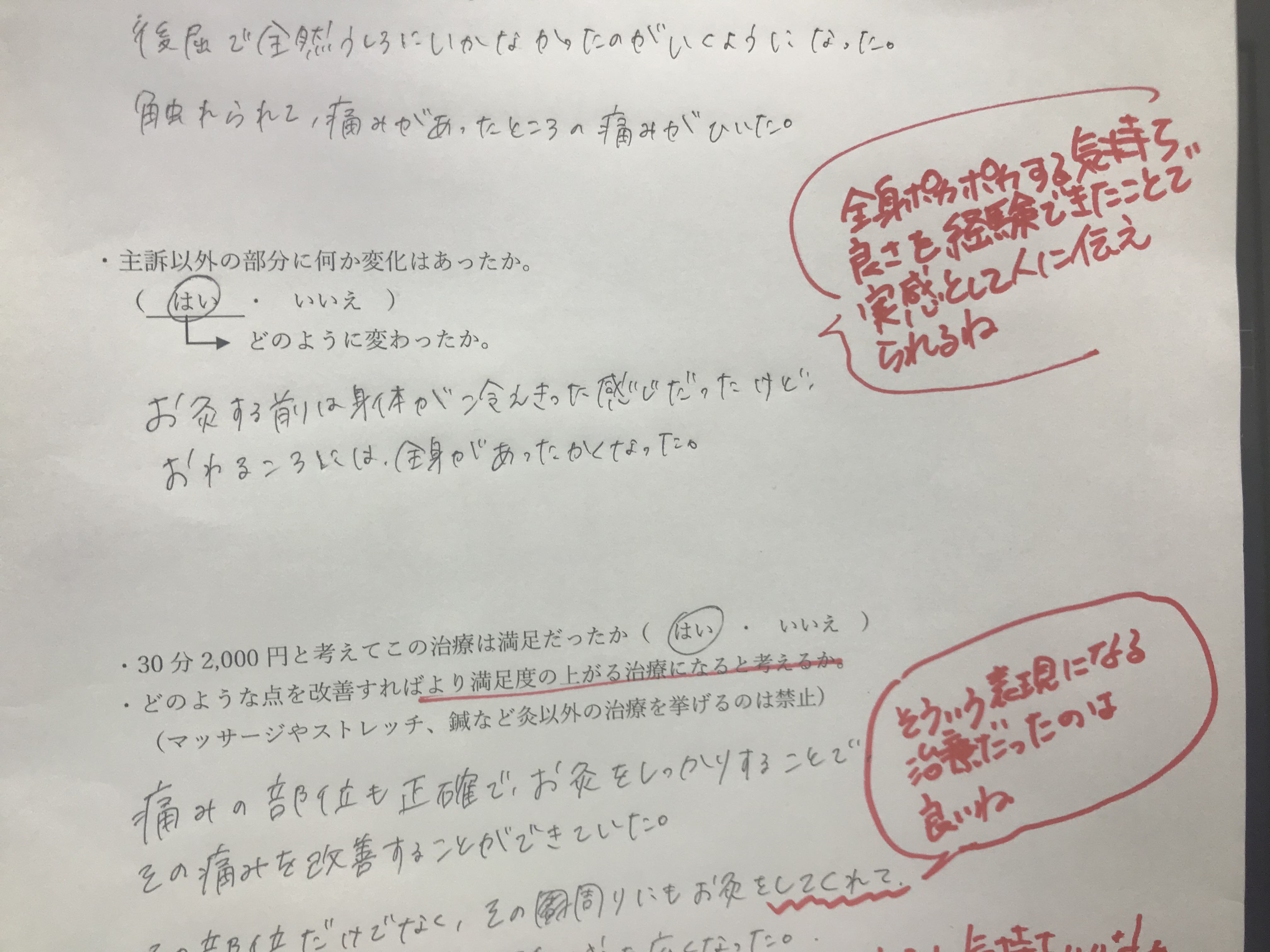 もっとこういう灸を使った方が良いとかいうアドバイスでなく
