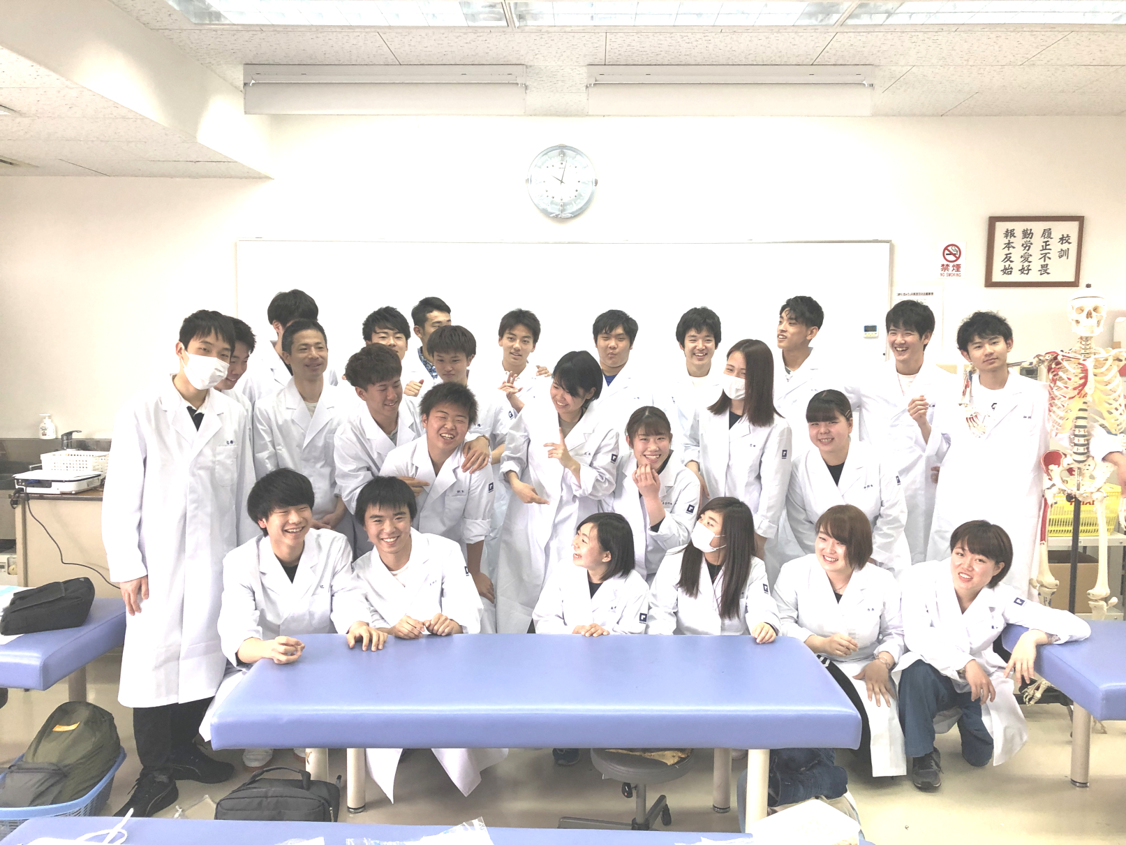 1年生の初めて白衣に袖を通したときの写真。