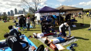 沢山の方が施術に訪れていただきました。午後はフルマラソンの方がドンドンとゴールされ、距離が長い分、疲労も強い印象でした。