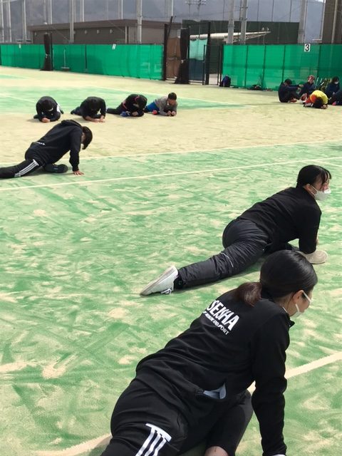 新しい選手が増え、本日はクールダウンでのストレッチを指導しました。