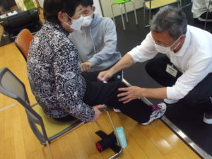 教室は、運動後に鍼灸治療も行います。ローラー鍼で行いました。