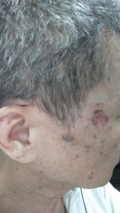 ↓、コメカミの黒いの皮膚科で取りました。(赤いのはカサブタです。)