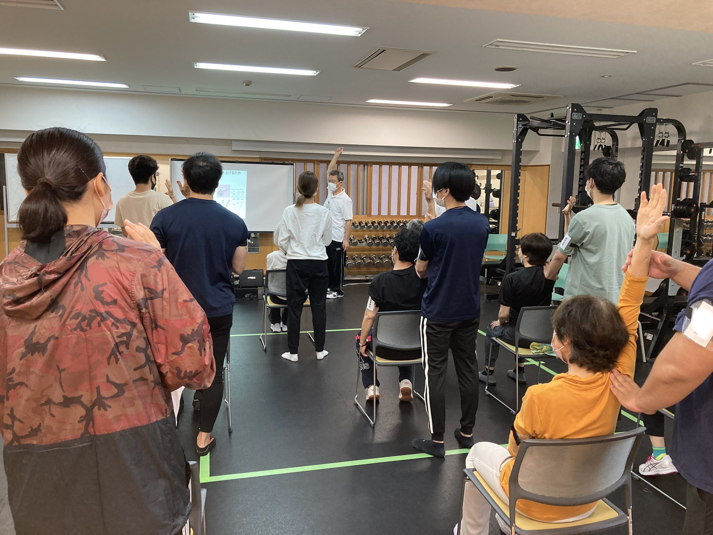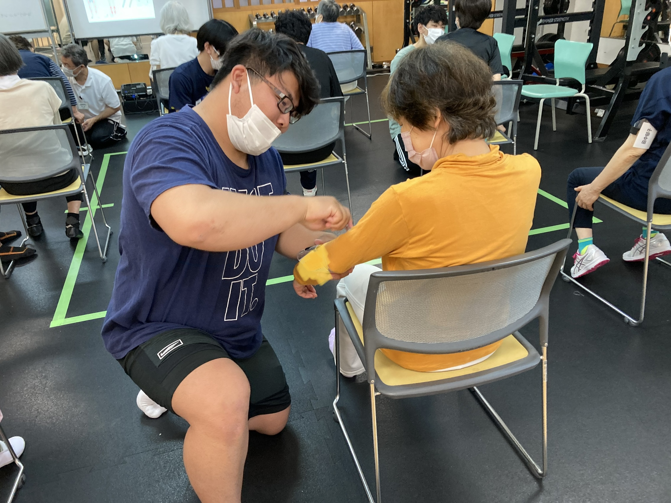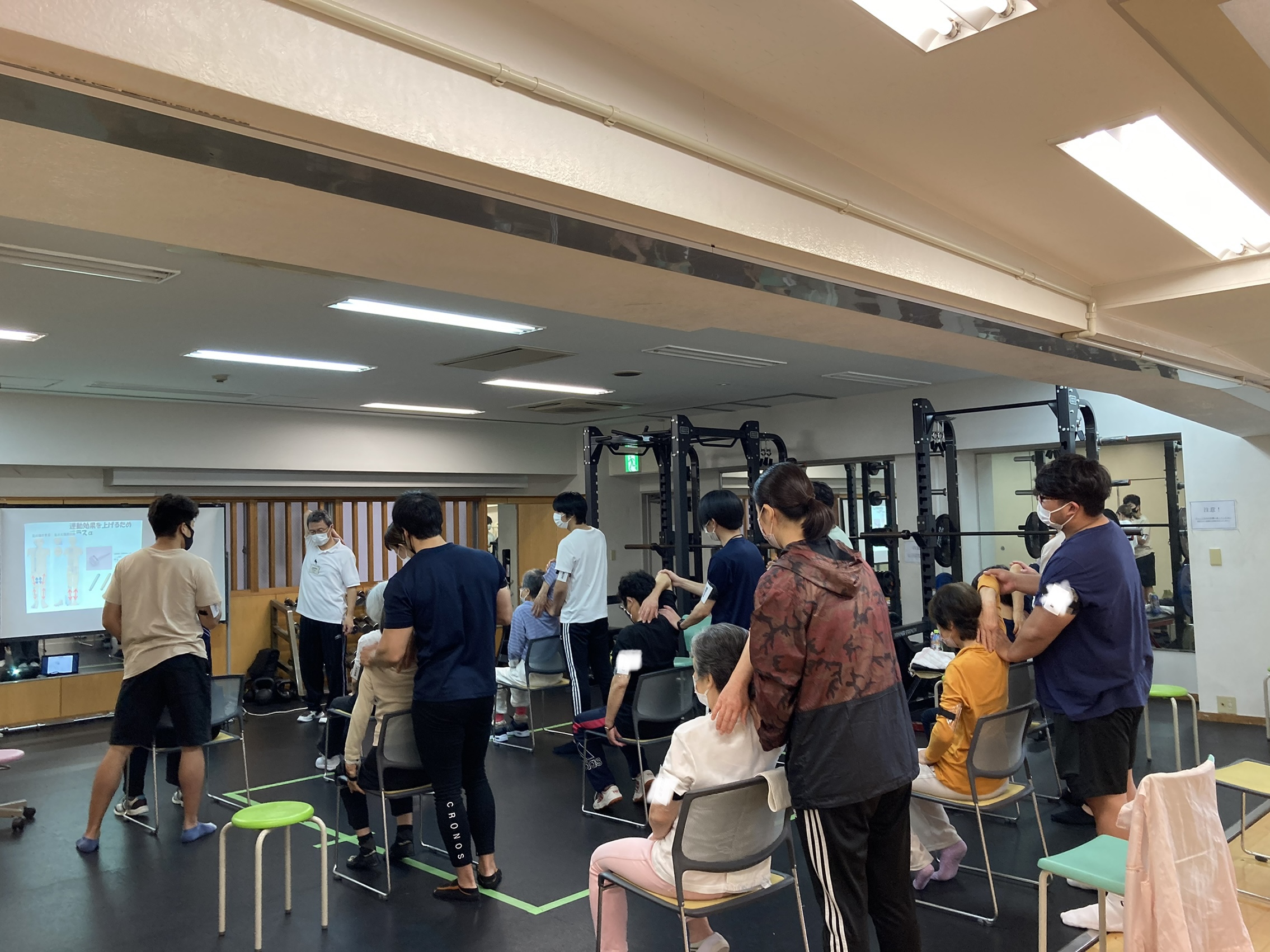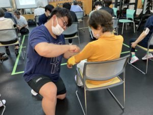 ローラー鍼をする前した後で可動域を確認しつつ、ストレッチなども行いしっかりと身体を動かされていました。