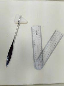 金づちのように見える道具は打腱器といって、腱をたたいた後の反射によって身体が正常かどうかを判断する道具です。