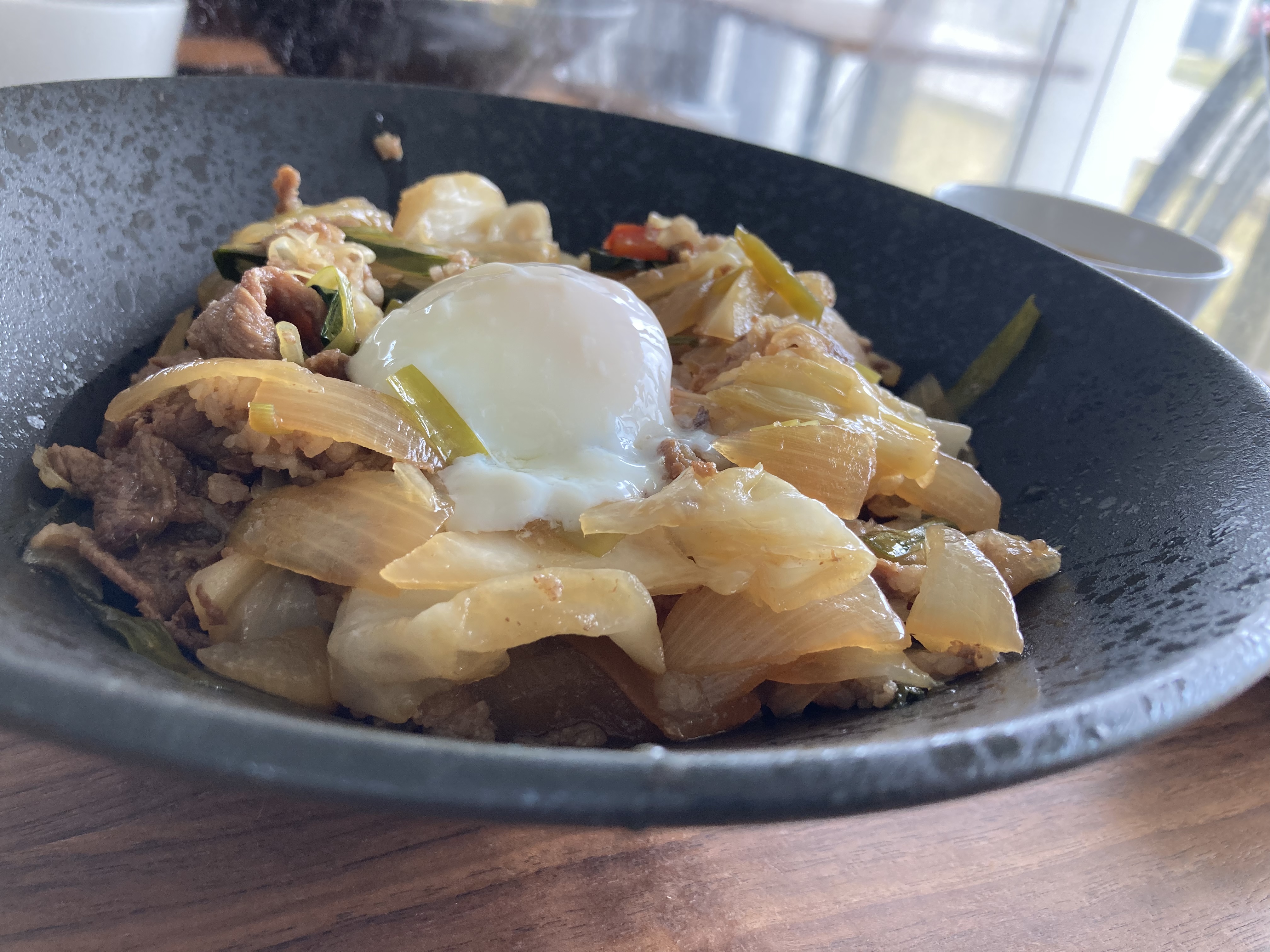 牛肉をメインに玉ねぎや長ネギを甘辛に味付けしたとても食欲をそそる一品!