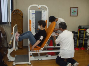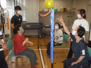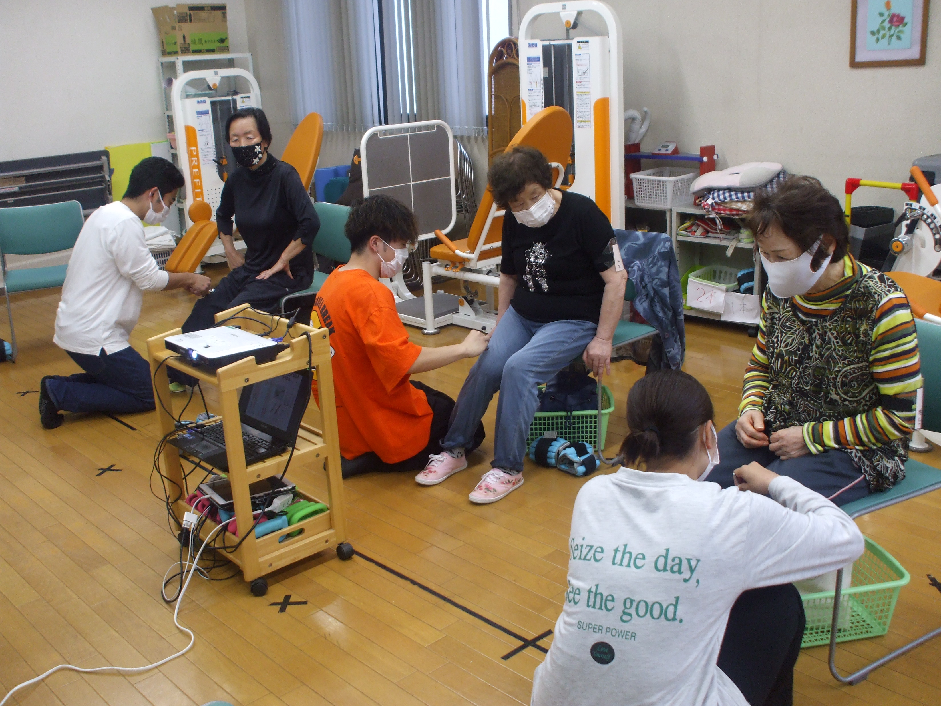 2022.06.23 三国・介護予防運動教室⑥(6/21) 三国の社会福祉協議会の会館内での介護予防教室、複雑な動きになってきました。 慣れない動作もあるでしょうから、ボチボチやります。 まずは、準備運動。ゆっくり、じっくりです。 筋トレマシーンで、足を鍛えます。 こんな器械もあります。足を伸ばします。 (体幹が立って、少し窮屈?) 本日のハイライト!『ミニ風船バレー』です。 まだ練習で、本番ではないのですが、学生も交えて白熱です。 終わった後は、ローラー鍼で足のケアをしました。 前の記事 記事一覧 次の記事