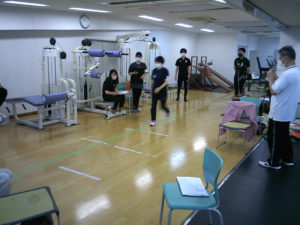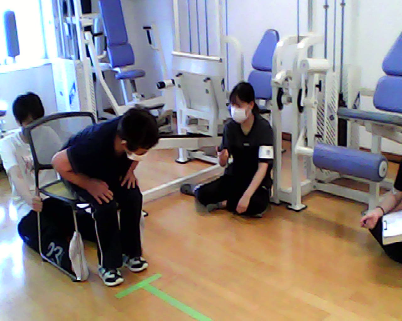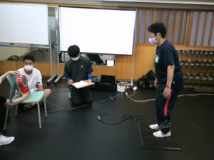 2022.07.23 介護予防運動・体力測定 いよいよ最終段階、体力測定をしました。 4月からの運動教室のプログラムの成果が問われる日です。 参加者の方もドキドキかもしれませんが、 計画を立て、実施してきた我々もドキドキなのです。 結果は、後日アップします。 まずは、色々な質問記入していただきました。 さっそく、開眼片脚立ちを測ってます。 (分かり難くてごめんなさい) 5mの歩行時間を測定します。 TUG、ちょっと難しいか? (イスから立ち上がって、3m歩いて、坐ります。) 大股で2歩の2ステップです。 全身反応時間を測定します。 前の記事 記事一覧 次の記事