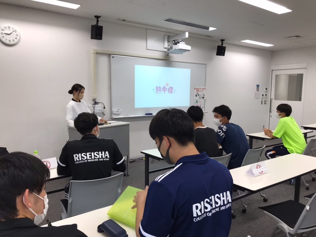 テーマは「熱中症について」。普段フィールドで選手に伝えられないことを伝えています。