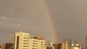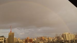 異常気象の一つなのか、豪雨での被害もありますので、軽率な発言は慎むべきですが、ふと、学校から外を見ると「虹」が見えました。