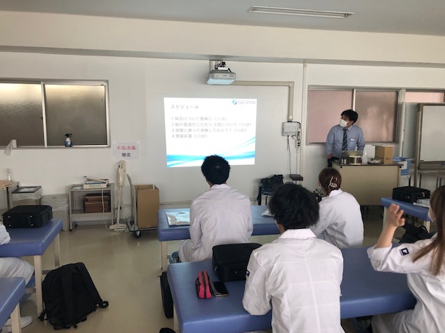 本日は、鍼の製造メーカーであるセイリン株式会社から講師を招いての授業を実施しました。