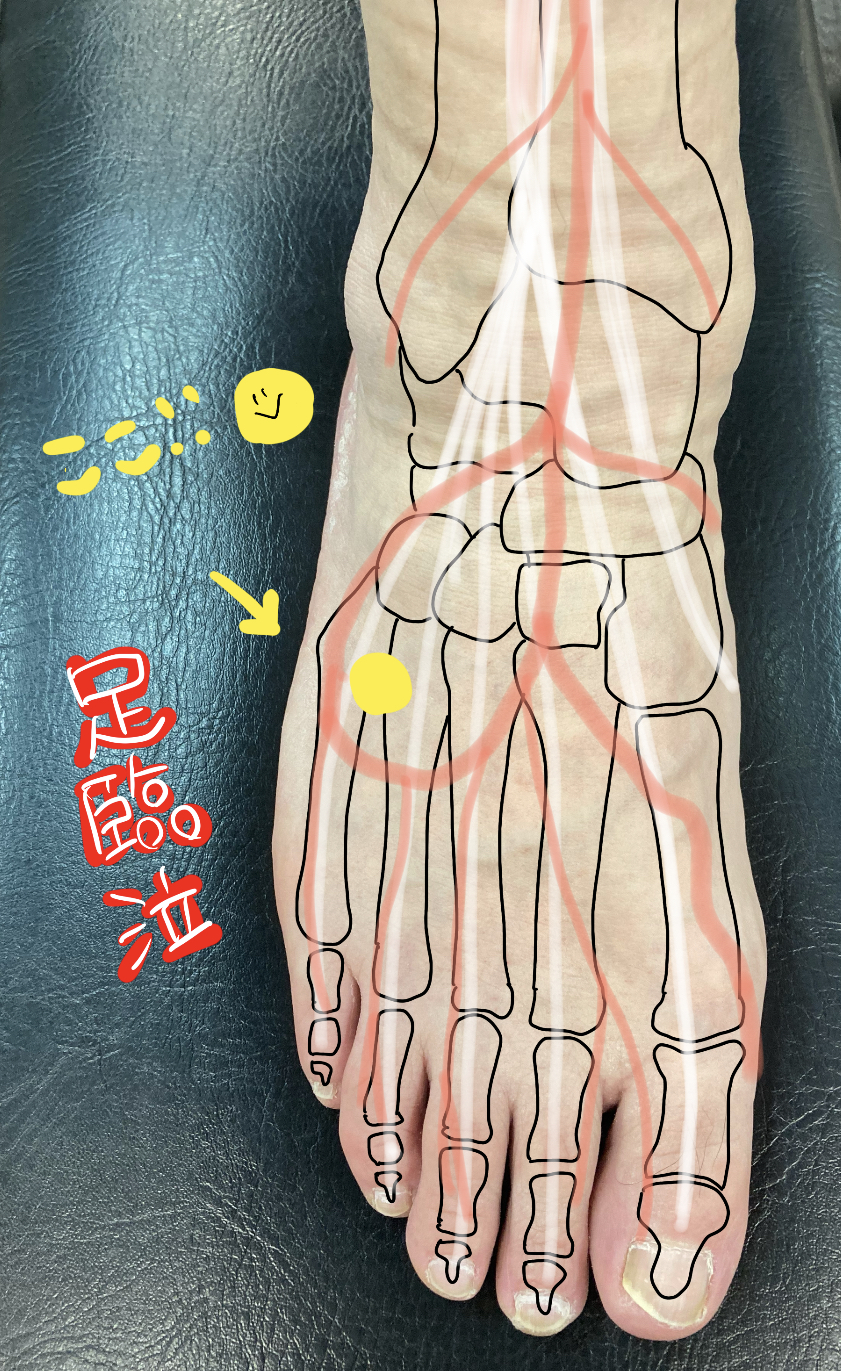 お灸で「足臨泣」というツボを刺激することとなりました!そのツボがこちら!