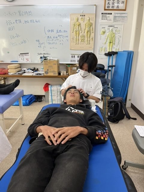 2022.10.26 医療と美容は繋がっている 茨木サッカー臨床実習です。 臨床実習の場では安全かつ説明が出来る治療であれば こちらから治療部位を指示することはほぼなくて、 授業で学んだ治療法や、学外セミナーで学んだ治療法も どんどん実践してもらっています。 写真はつい先日トータル美容専攻を修了した森くん。 目の奥が疲れているという選手に、手慣れた様子で 目の周りに鍼を刺していきます。 選手からも症状が改善したと評価をいただきました。 美容の講座で身につけた技術を治療の現場で しっかりと活用していました。 前の記事 記事一覧 次の記事