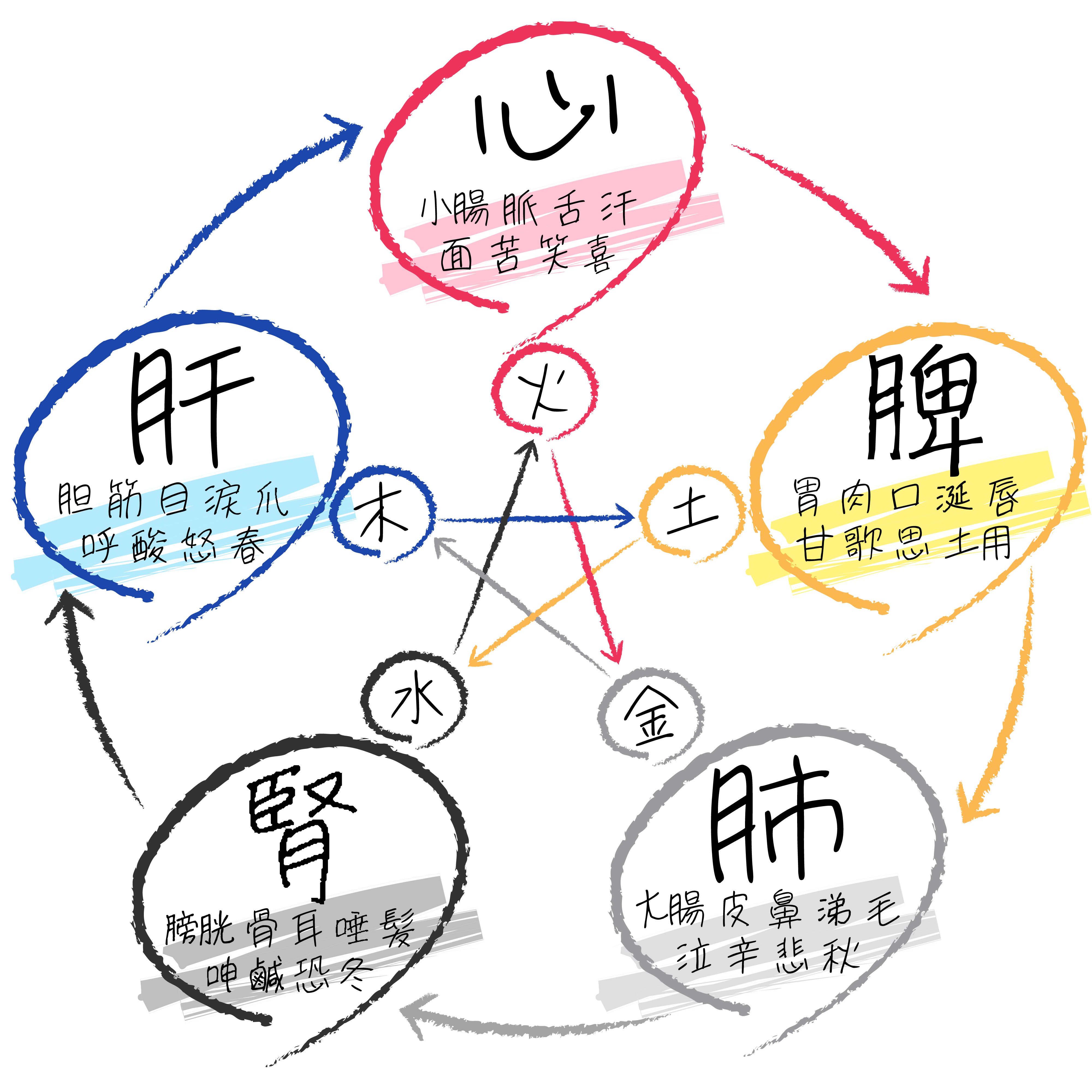 この五色には意味があって「五色」といい、国家試験科目「東洋医学概論」でも