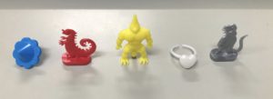 これらの青いコマ、赤い怪獣、黄色い何か、白い指輪、黒い怪獣、