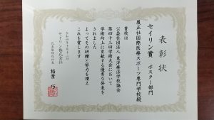 2022.11.19 ちょっとビックリ!? 10月にあった学校協会の学術大会から一月ほど過ぎ、昨日ポスター発表について表彰をいただきました。 超音波診察装置を使い、鍼刺激で皮下の脂肪組織の動きが促進されたといった内容でしたが、 取り組んだ学生に拍手を送りたいと思います。 私自身が褒められる事は、余りありませんので、学生を見習って色々なことに励みたいと思います。 「セイリン」は、鍼のトップメーカーで、副賞として鍼治療用の鍼を沢山いただきました。 ありがとうございました。 前の記事 記事一覧 次の記事