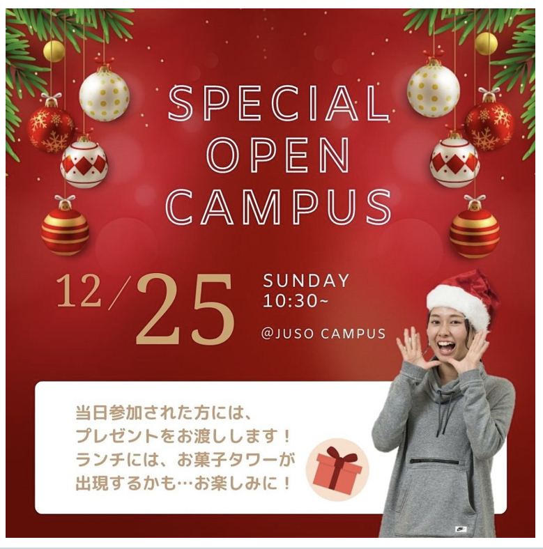 今週末12月25日はもちろんクリスマスですが、本校では『クリスマスオープンキャンパス』を開催致します!