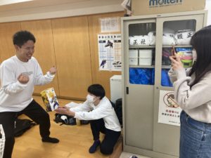 こちらも同じく某コンビニの一番くじで当たった大人気キャラクターのフィギュアモノマネをしている村奥くん!