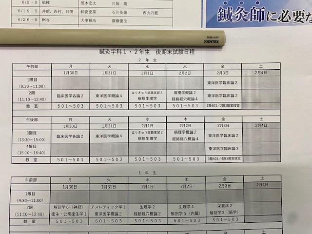 2023.01.23 机上のテーブルマナー 来週より、鍼灸学科1年・2年は後期末試験が始まります! (3年は今週水曜から再試験・・・の人もいます・・・。) 日頃の努力を思う存分発揮してください! 前の記事 記事一覧 次の記事
