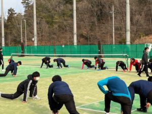 続いて、コートに出てのウォーミングアップとトレーニング。