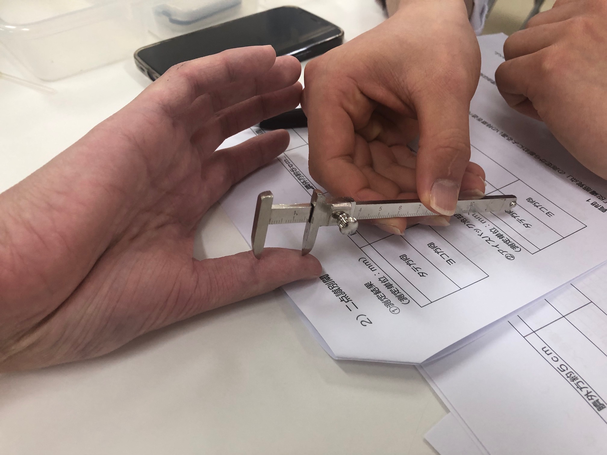 一言で感覚と言っても色々ございますが、実習では、二点弁別、視覚そして聴覚について学んでいただきました。