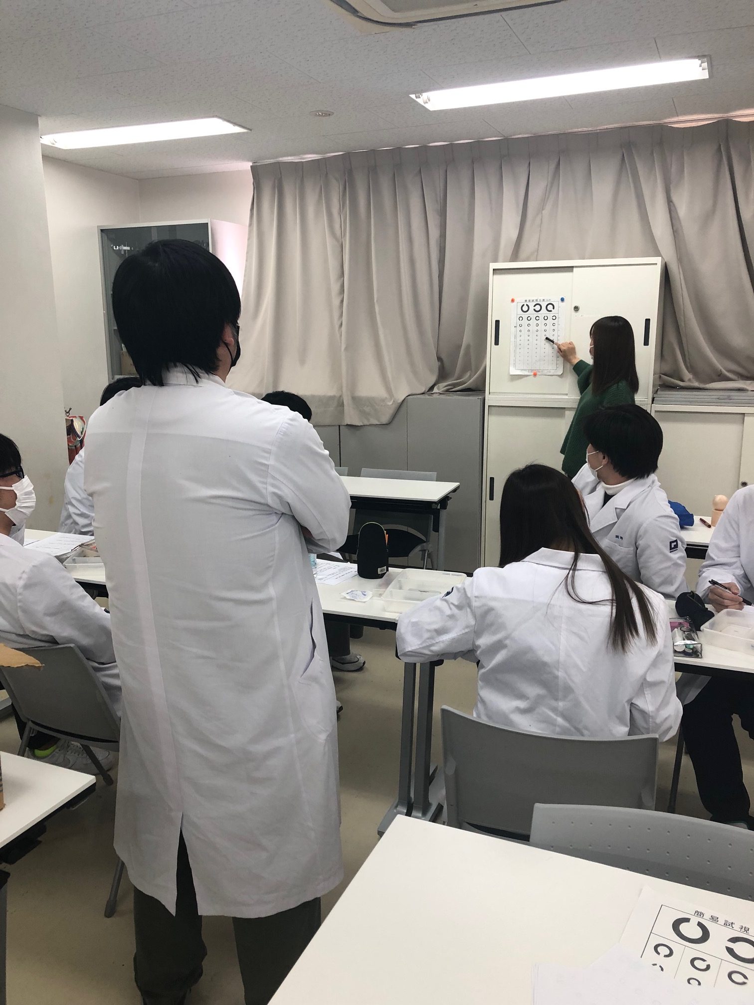 つぎに紹介するのは視覚です。視覚については視力を測定したり。近点(はっきりとものが見える最短距離)を測定して、目のレンズの屈折率(ジオプトリ:D)を求めるというものです。
