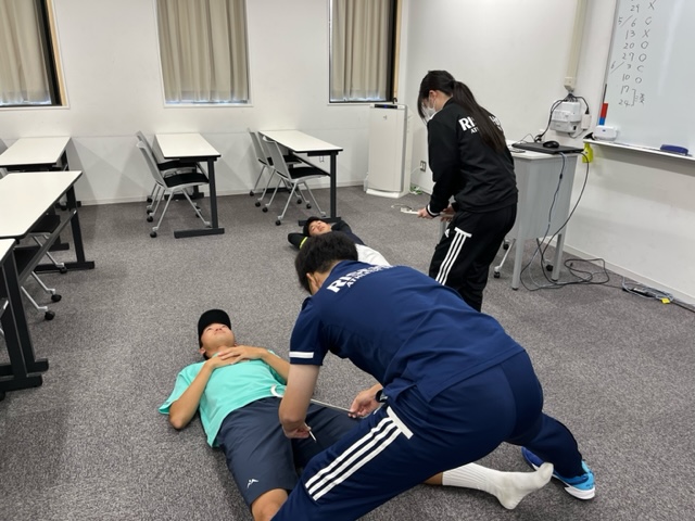 メディカルチェックを担当したAT実習生も、学校で学んだばかりのほかほかの知識・技術を使って、頑張って測定していました。