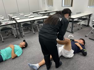 授業で学んだ知識・実技技術を、現場で選手に行う貴重な時間です。