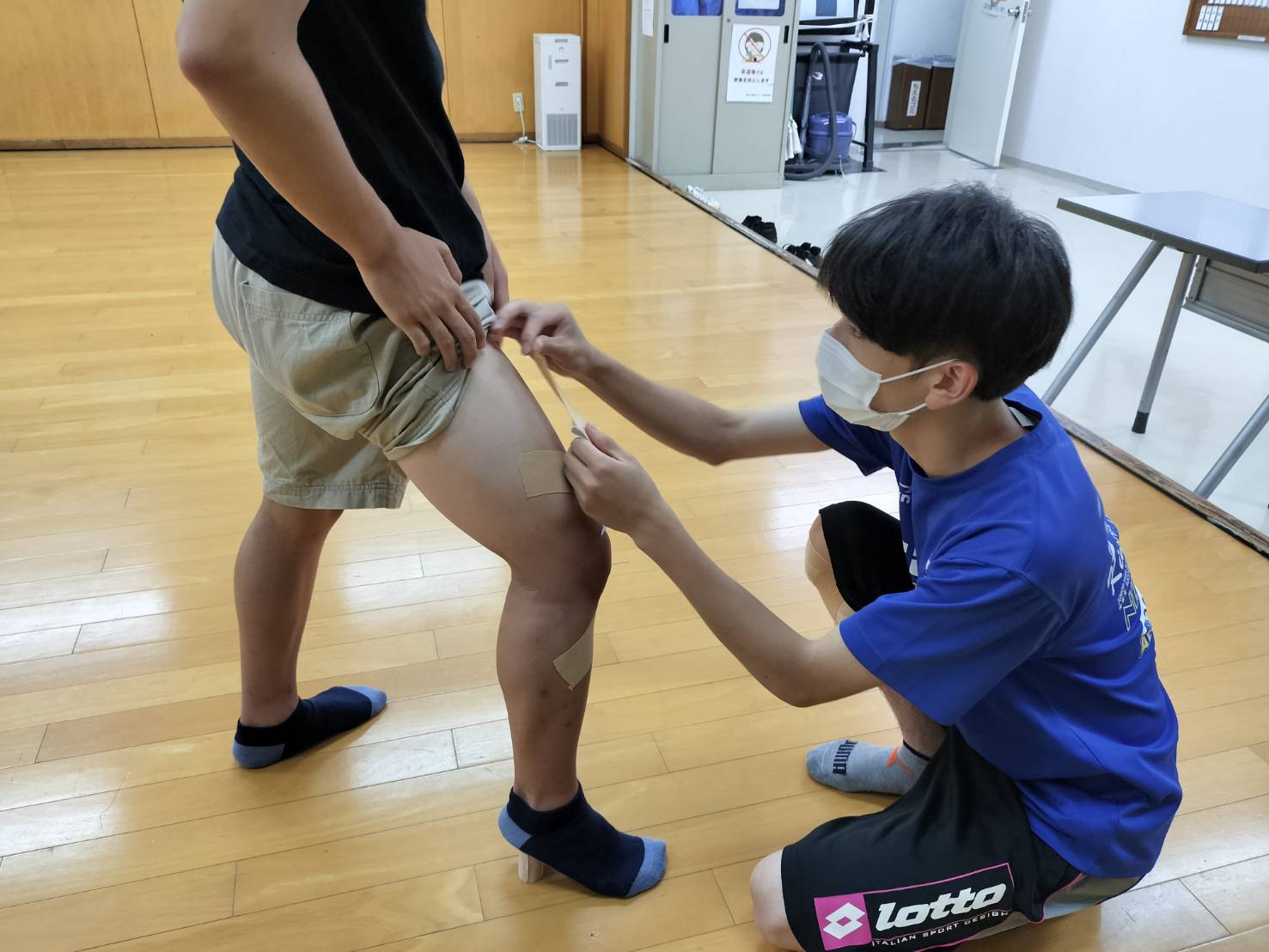 最近プラスATコースの3年生が勉強の合間にテーピング練習に来てくれています!
