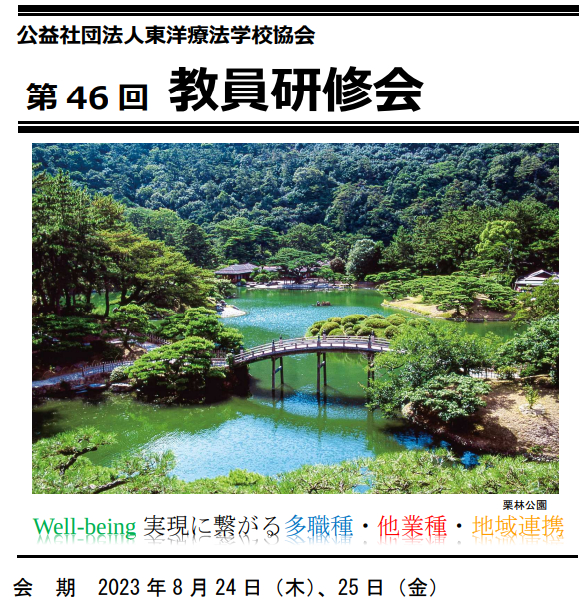 2023.08.22 教員研修会 8月24日(木)・25日(金)に東洋療法学校協会の教員研修会があります。 今年で46回目の教員研修会です。 私の初めて行った教員研修会は何回目だったかな。ここ数年はコロナ禍の影響でオンラインや ハイブリッドでの開催でしたが今年は現地での研修になります。 テーマが「Well-being 実現に繋がる多職種・他業種・地域連携」ということで、 なんだか鍼灸業界の幅が広がりそうな良い研修となりそうです。 学生には「勉強しろ!」と言い続けていますが、我々もこの2日間しっかり勉強してまいります。 前の記事 記事一覧 次の記事